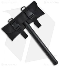 The American Tomahawk Comanche features 1/4″ thick N690Co steel construction with layered linen Micarta handles. The head measures 8.75″ across and has a 3.625″ ax cutting edge and a 2.5″ double-edged dagger spike. The Comanche comes with a Kydex sheath and includes a loop for belt carry.