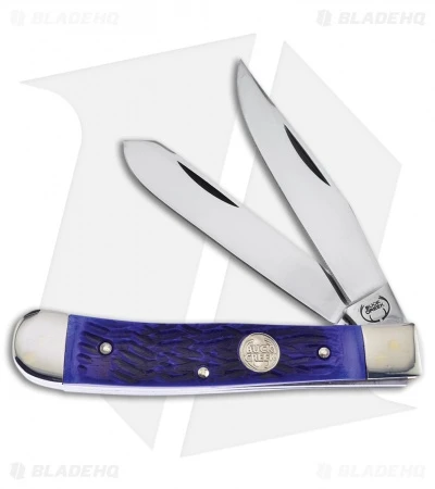 Keep the Buck Creek Trapper on your person to quickly tackle everyday cutting chores. The Trapper features two mirror polished blades, clip point and spey, that open easily by nail nick on a slip joint mechanism. This model sports nickel silver bolsters and blue pick bone handle scales.