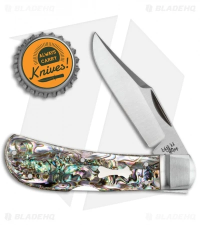 - Abalone handle with nickel silver bolsters and an inlay shield.