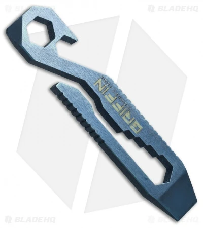 The Griffin Pocket Tool offers a slim EDC design with 11 essential utility tools. This sleek pocket accessory combines a screwdriver, prybar, bottle opener, scoring tool and several wrench sizes into a compact, self-contained tool kit. A deep carry pocket clip allows for comfortable pocket carry without adding to the bulk in your pockets. This Griffin Pocket Tool is made from titanium in a blue anodized finish.