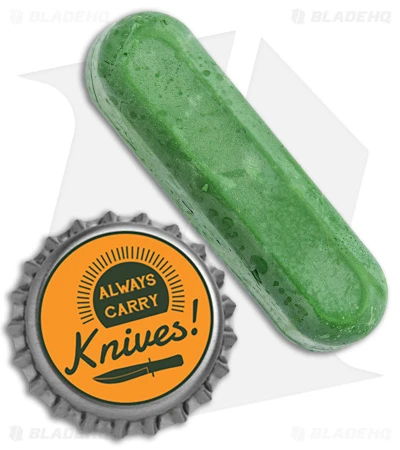 The KNAFS Green Ultra-Fine Compound is a peanut-sized bar of strop compound that will elevate your honing and sharpening game so you can get that razor edge you’ve been searching for! Spread the compound on your Strop and pull your blade in the opposite direction from cutting or sharpening. Do this 7-10 stimes on each side at the same angle as the knife edge until your blade is perfectly keen!