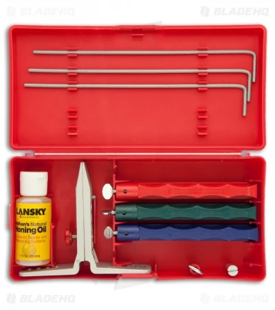 This Lansky Standard Sharpening System includes: Coarse Hone, Medium Hone, Fine Hone, One Guide Rod For Each Hone, Honing Oil, Multi-Angle Knife Clamp