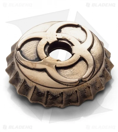 This Lion ARMory Beer Cap Toxic Tag key chain bead is made out of brass.