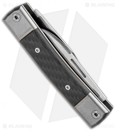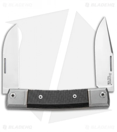 This model of the LionSteel BestMan has both a clip point and wharncliffe blade. The handle has carbon fiber inserts with titanium bolsters.